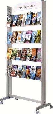 Descriptif du produit :Structure aluminium. Bandeau d\'affichage en polystyrène cristal haut. 9 cm. 4 tablettes (L/H : 79 x 20 cm) en polystyrène cristal à équiper de 24 séparateurs amovibles. Equipée de 4 roulettes pivotantes. L/H/P : 82,5 x 168,5 x 38 cm. Livré prêt à monter avec notice.