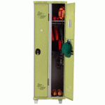 Utilisation en intérieur. Structure en tôle d’acier profilée à froid soudée garantissant rigidité et fiabilité. Montants avec retours intérieurs améliorant la résistance à l’effraction. Cloison intérieure galvanisée.Porte avec fermeture par loqueteau avec serrure \'\'par code\'\'. Pieds hauteur 11 cm en polypropylène inaltérable avec vérins de mise à niveau. Corps coloris gris clair, et portes finition époxy couleur cuit au four après traitement par phosphatation. Largeur 1 colonne = 400 mm (prévu pour 2 personnes).Modèle présenté : 3 colonnes/6 personnes coloris vert.