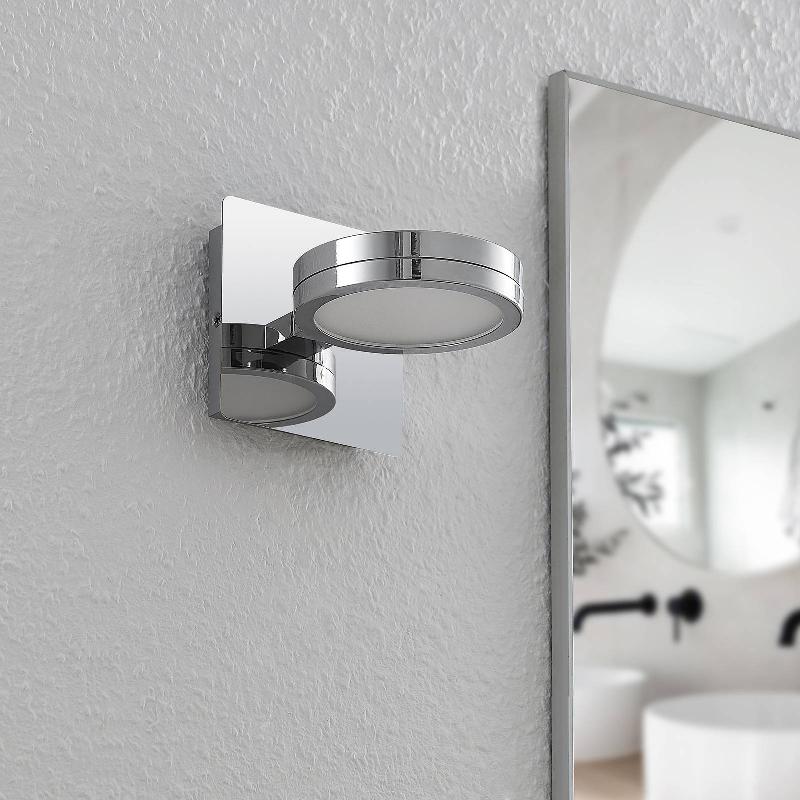 Descriptif du produit :Applique murale chromée Skrolla avec ampoule LED à couleur de lumière variable, IP44 Skrolla est idéale pour la salle de bains, où elle peut par exemple être installée près d\'un miroir pour l\'éclairer agréablement. La lumière est dirigée vers le bas et la couleur de la lumière peut être adaptée à l\'aide de l\'interrupteur mural normal. La lumière est alors soit blanche chaude, ...