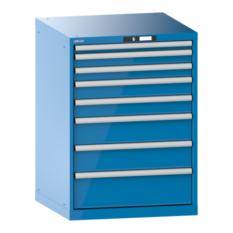 - Armoire à tiroirs LISTA - Solution de stockage polyvalente et robuste pour un rangement efficace et sécurisé Cette armoire à tiroirs LISTA offre une solution de stockage optimale avec une capacité de charge élevée et des possibilités de personnalisation flexibles. Elle est conçue pour s'adapter à divers environnements et répondre à des exigences variées. Dimensions : H 100 x L 71,7 x P 72,5 cm, hauteur utile 90 cmDimension des tiroirs : 8 tiroirs avec des hauteurs frontales variées 1 x 5 / 2 x 7,5 / 2 x 10 / 2 x 15 / 1 x 20 cmStabilité maximale : Bâti supportant jusqu'à 4 t et tiroirs de 75 kg, garantissant une utilisation sans failleUtilisation maximale : Extension totale et hauteur frontale optimale des tiroirs pour une manipulation aiséeExcellentes propriétés de protection : Protection contre la poussière, les liquides et l'usure grâce à une surface résistante aux chocsSécurité convaincante : Système anti-décrochage et blocage individuel des tiroirs pour une sécurité accrueProtection contre la corrosion : Laquage à immersion/électrophorèse et peinture écologiqueRangement clair : Organisation facilitée par des matériaux de subdivision adaptésÉtiquetage professionnel : Facilité d'étiquetage avec le logiciel LISTA ScriptDéplacement silencieux : Glissière sans traverse pour un usage sans bruitAdaptabilité : Trous pré-percés pour des modifications aiséesSystème de fermeture: Serrure à clé (KEY Lock)Couleur : Gris clair RAL 7035 ou bleu clair RAL 5012 pour un look moderne L'armoire Lista 36 x 36E associe sécurité et praticité.