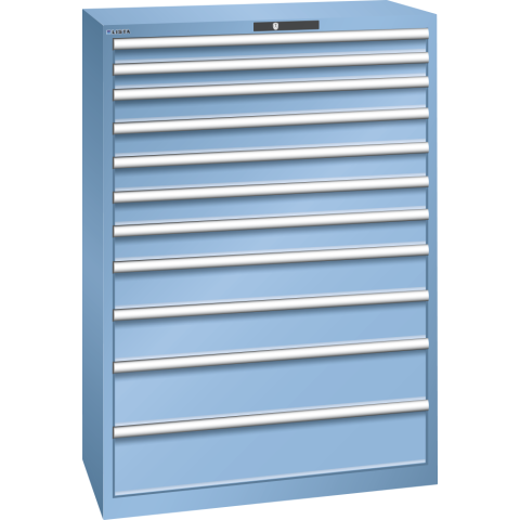 - Les armoires à tiroirs LISTA sont des solutions de rangement hautement personnalisables, offrant une sécurité et une protection optimales pour divers outils et marchandises. Construites pour une utilisation maximale et une excellente durabilité, ces armoires s'intègrent de manière flexible dans tout environnement professionnel.Dimensions : H 145 x L 102,3 x P 57,2 cm Dimensions des tiroirs : 11 tiroirs avec des hauteurs frontales variées 2 x 7,5 / 5 x 10 / 2 x 15 / 2 x 20 cm, largeur et profondeur utiles 91,8 x 45,9 cmCapacité de charge élevée : Bâti jusqu'à 4 t, Tiroirs de 200 kg chacunSécurité des tiroirs : Système anti-décrochage et blocage individuelProtection contre la corrosion : Laquage et peinture écologiquesOrganisation optimale : Matériel de subdivision LISTA et étiquetage professionnelFlexibilité et adaptation : Pré-perçages pour accessoires diversDéplacement silencieux : Glissière sans traverse pour un fonctionnement fluideCouleur : Gris clair RAL 7035 ou bleu clair RAL 5012Système de fermeture sécurisé : Serrure à clé Key Lock.