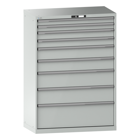 - Les armoires à tiroirs LISTA sont des solutions de rangement hautement personnalisables, offrant une sécurité et une protection optimales pour divers outils et marchandises. Construites pour une utilisation maximale et une excellente durabilité, ces armoires s'intègrent de manière flexible dans tout environnement professionnel.Dimensions : H 145 x L 102,3 x P 57,2 cmDimensions des tiroirs : 9 tiroirs avec des hauteurs frontales variées 2 x 7,5 / 2 x 10 / 2 x 15 / 2 x 20 / 1 x 30 cm, largeur et profondeur utiles 91,8 x 45,9 cmCapacité de charge élevée : Bâti jusqu'à 4 t, Tiroirs de 75 à 200 kg chacunSécurité des tiroirs : Système anti-décrochage et blocage individuelProtection contre la corrosion : Laquage et peinture écologiquesOrganisation optimale : Matériel de subdivision LISTA et étiquetage professionnelFlexibilité et adaptation : Pré-perçages pour accessoires diversDéplacement silencieux : Glissière sans traverse pour un fonctionnement fluideCouleur : Gris clair RAL 7035 ou bleu clair RAL 5012Système de fermeture sécurisé : Serrure à clé Key Lock.