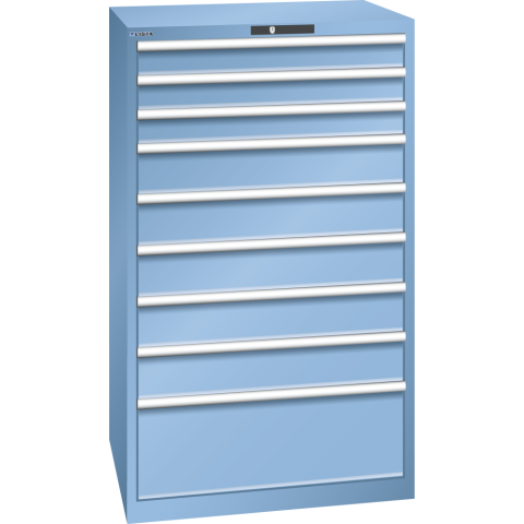 - Les armoires à tiroirs LISTA sont des solutions de rangement hautement personnalisables, offrant une sécurité et une protection optimales pour divers outils et marchandises. Construites pour une utilisation maximale et une excellente durabilité, ces armoires s'intègrent de manière flexible dans tout environnement professionnel.Dimensions : H 145 x L 87 x P 72,5 cm Dimensions des tiroirs : 9 tiroirs avec des hauteurs frontales variées 3 x 10 / 5 x 15 / 1 x 30 cm, largeur et profondeur utiles 76,5 x 61,2 cmCapacité de charge élevée : Bâti jusqu'à 4 t, Tiroirs de 200 kg chacunSécurité des tiroirs : Système anti-décrochage et blocage individuelProtection contre la corrosion : Laquage et peinture écologiquesOrganisation optimale : Matériel de subdivision LISTA et étiquetage professionnelFlexibilité et adaptation : Pré-perçages pour accessoires diversDéplacement silencieux : Glissière sans traverse pour un fonctionnement fluideCouleur : Gris clair RAL 7035 ou bleu clair RAL 5012Système de fermeture sécurisé : Serrure à clé Key Lock.