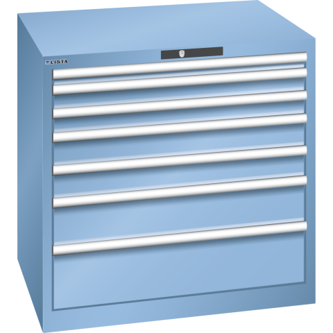 - Les armoires à tiroirs LISTA sont des solutions de rangement hautement personnalisables, offrant une sécurité et une protection optimales pour divers outils et marchandises. Construites pour une utilisation maximale et une excellente durabilité, ces armoires s'intègrent de manière flexible dans tout environnement professionnel.Dimensions : H 85 x L 87 x P 72,5 cm Dimensions des tiroirs : 7 tiroirs avec des hauteurs frontales variées 1 x 5 / 2 x 7,5 / 2 x 10 / 1 x 15 / 1 x 20 cm, largeur et profondeur utiles 76,5 x 61,2 cmCapacité de charge élevée : Bâti jusqu'à 4 t, Tiroirs de 75 kg chacunSécurité des tiroirs : Système anti-décrochage et blocage individuelProtection contre la corrosion : Laquage et peinture écologiquesOrganisation optimale : Matériel de subdivision LISTA et étiquetage professionnelFlexibilité et adaptation : Pré-perçages pour accessoires diversDéplacement silencieux : Glissière sans traverse pour un fonctionnement fluideCouleur : Gris clair RAL 7035 ou bleu clair RAL 5012Système de fermeture sécurisé : Serrure à clé Key Lock.