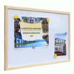Descriptif du produit :Modèle photographié 60 x 80 cm 8 A4Tableau d’affichage surface en liège punaisable Encadrement en pin naturel. Support en fibre de bois ép.6 mm avec surface en liège naturel Fixation par crochets (visserie non fournie).