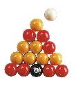 Descriptif du produit :En résine phélonique, anticorrosion.14 billes jaunes et rouges Ø 50,8 mm + 1 bille noire numérotée Ø 50,8 mm + 1 bille blanche Ø 47 mm.