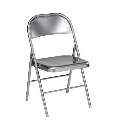 - La chaise pliante Métal est un meuble solide aux lignes modernes. Sa robustesse s’explique par sa conception tout métal avec l’assise et le dossier galbés et renforcés par 2 entretoises. Son piètement tube métal de 22 mm de diamètre est gage de sa stabilité. Ce modèle est accrochable, ce qui facilite grandement son rangement. De plus, l’épaisseur de la chaise n’est que de 9 cm ...