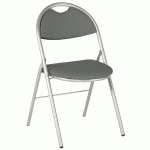 Descriptif du produit :Dossier arrondi protégé avec prise de main. Dossier hauteur 24 cm, avec prise de main. L/H/P chaise ouverte : 51 x 87 x 57 cm.L/H/P chaise pliée : 51 x 99 x 11 cm.Piètement tube métallique Ø 25 et 22 mm laqué époxy. Poids : 4,2 kgPossibilité d´accrochage en ligne, nous consulterLivré monté.