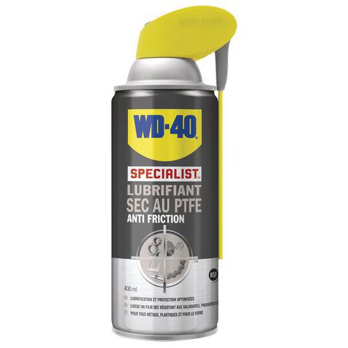 Lubrifiant sec Specialist au PTFE 400mL WD40 Aérosol brut/net : 520/400 Certifié NSF : oui CLP Dangereux pour la couche d'ozone : H315 Provoque une irritation cutanée CLP Dangereux pour la couche d'ozone : H336 Peut provoquer somnolence ou vertiges CLP Dangereux pour la santé : H304 Peut être mortel en cas d’ingestion et de pénétration dans les voies respiratoires CLP Dangereux pour l'environnement : H411 Toxique pour les organismes aquatiques, entraîne des effets néfastes à long terme CLP Produits inflammables : H222 Aérosol extrêmement inflammable Contenance : 400 mL Température d'utilisation maxi : 260 °C Température d'utilisation mini : 45 °C Usage : Alimentaire Usage : Atelier Usage : Chantier Usage : Collectivité Lubrifiant sec Specialist au PTFE réduit simultanément la friction et l’usure. Laisse un film sec résistant aux salissures, poussières et huile. Utilisable dans une large plage de températures (45°C à +260°C). Lubrifie et protège. Sèche rapidement. Peutêtre utilisé comme agent de démoulage. Formule certifiée H2 par la NSF. Lubrifiant sec Specialist au PTFE, Contenance: 400 mL, Aérosol brut/net: 520/400, Température d'utilisation mini: 45 °C, Usage: Atelier Chantier Collectivité Alimentaire, Température d'utilisation maxi: 260 °C, CLP Dangereux pour la couche d'ozone: H315 Provoque une irritation cutanée H336 Peut provoquer somnolence ou vertiges, Certifié NSF: oui, CLP Dangereux pour l'environnement: H411 Toxique pour les organismes aquatiques, entraîne des effets néfastes à long terme, CLP Produits inflammables: H222 Aérosol extrêmement inflammable, CLP Dangereux pour la santé: H304 Peut être mortel en cas d’ingestion et de pénétration dans les voies respiratoires