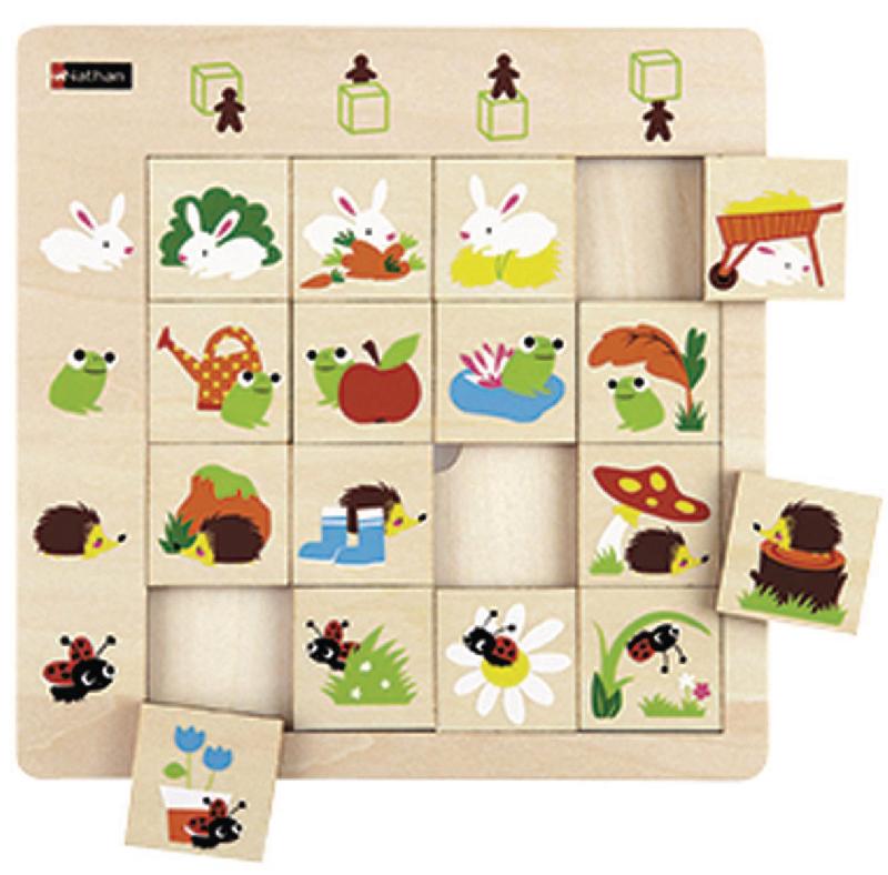 Descriptif du produit :16 pièces et 1 socle en bois verni. L/l/ép. socle : 21 x 21 x 0,7 cm L/l/ép. pièce : 4 x 4 x 0,4 cm.