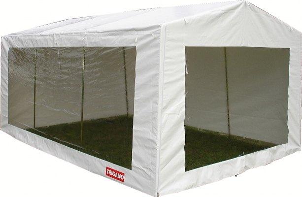 Composé d'une armature, d'une toiture, de 2 murs fenêtre et 2 murs pleins. Entoilage polyester enduit 650 g/m² classé au feu M2. ...