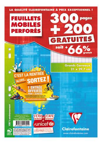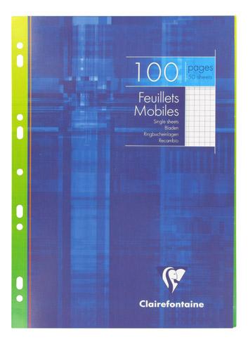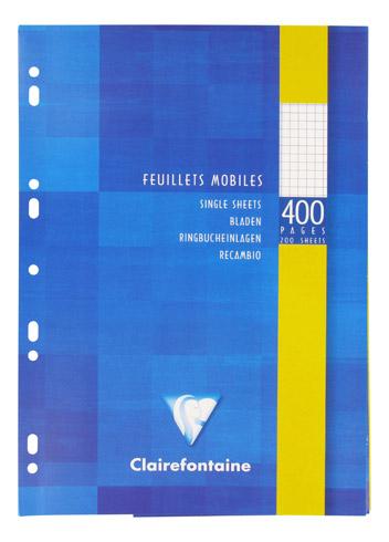 Feuillets mobiles perforés Couleur : Clairefontaine Grands carreaux. Format : A4. Grammage : 90 g/m². Quantité : 200 unités. Coule ...