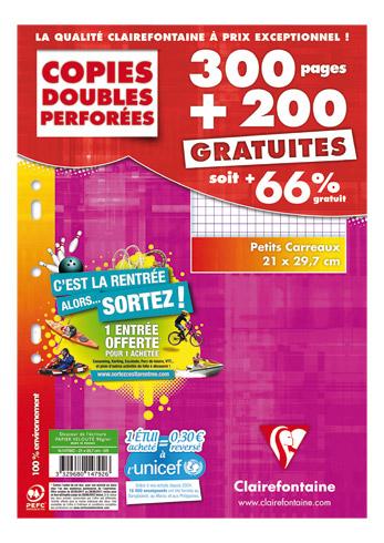 100 Copies doubles perforées - Clairefontaine - A5 - Grands carreaux Marque : Clairefontaine Délai de livraison ...