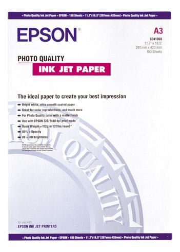 Epson Pap Couché Qual Photo A3+ (100f./102g).Type de finition: Mat, Poids du support: 102 g/m², Format de papier: A3+.Larg ...