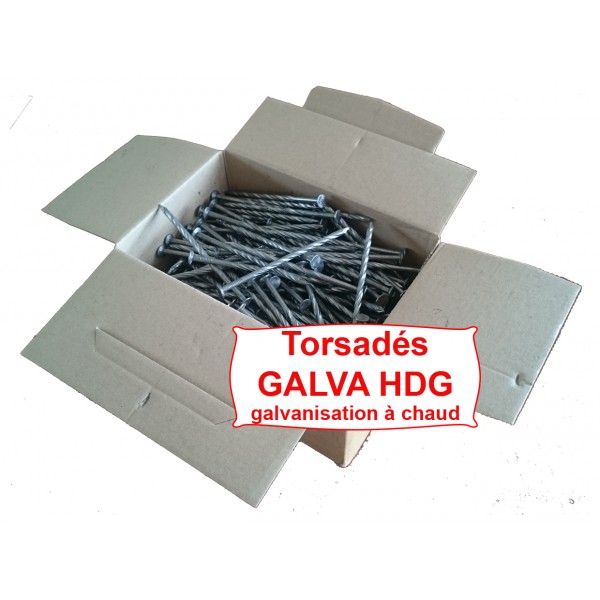 Clous torsadés tête plate galvanisation à chaud HDG 2.5x50, en boite de 5Kg pour clouage bois avec une meilleure résistance à l'ar ...