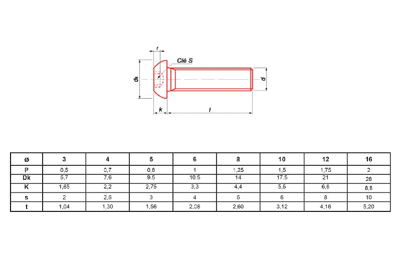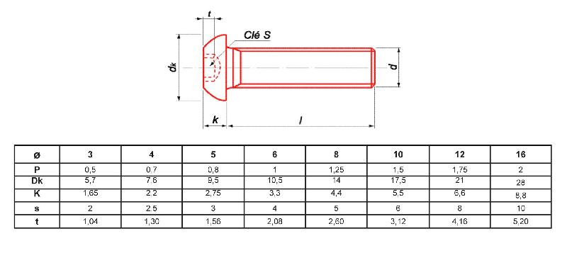 Caractéristiques techniques : Type de tête : tête bombée.Empreinte : 6 pans creux.Classe : 10.9.Norme :ISO 7380. Marque ...