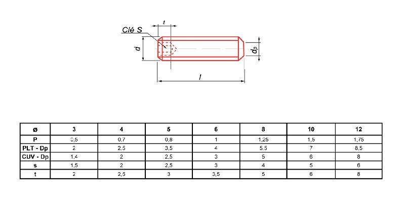 Caractéristiques techniques :Fixation métaux.Type : sans-tête.Empreinte : 6 pans creux.Bout : téton.Métal : acier.Finition : ...