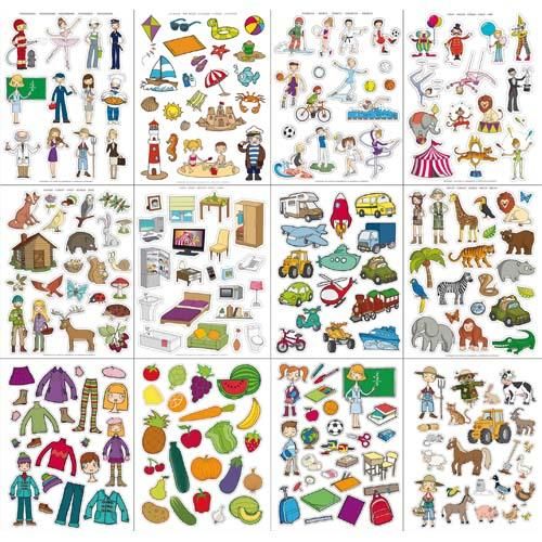 Lot de 36 feuilles 12 thèmes Format A5.Thèmes : la ferme, les fruits et légumes, la jungle, les transports, les vêtements, la ...