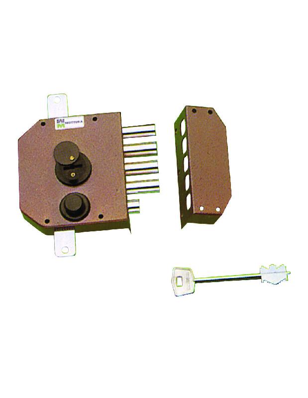 Serrure Mottura Acier 155 x 91 x 30 mm, 3 pènes dormants et demi tour acier. Fouillot carré de 7mm et double pompe ...