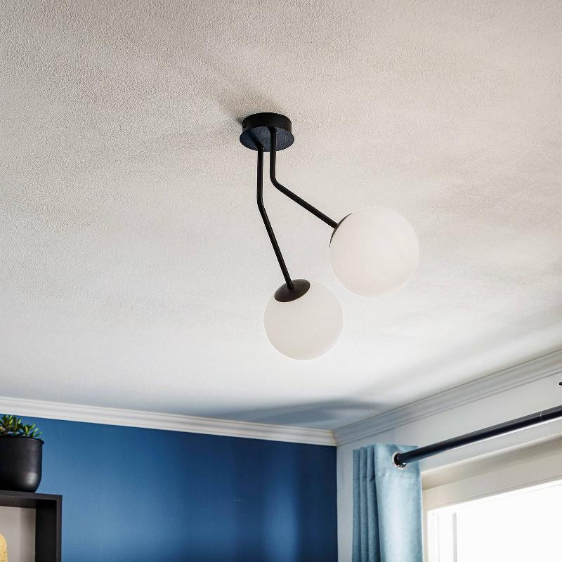 Plafonnier Plaza : élégance et polyvalence pour les pièces à vivre modernes Le plafonnier Plaza en noir et opale allie un design m ...