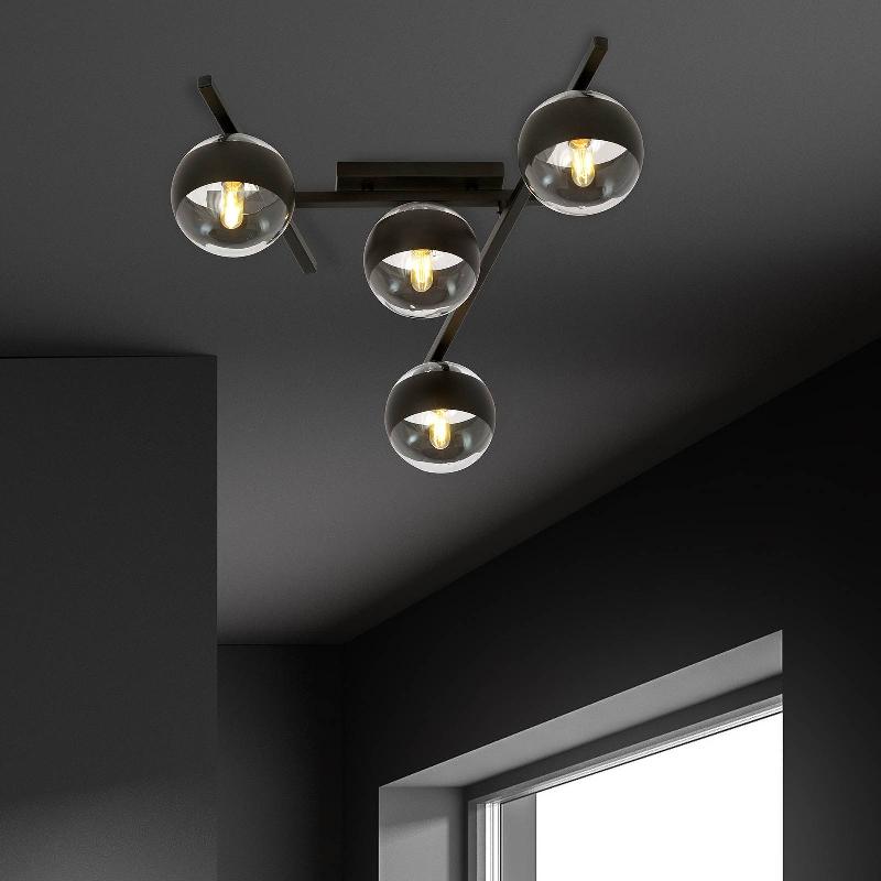Plafonnier Smart : élégance et polyvalence pour les pièces modernes Le plafonnier Smart, noir/transparent, à 4 lampes, allie un de ...