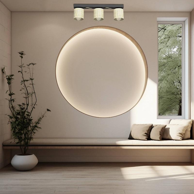 Plafonnier Jovin : élégance et polyvalence pour les pièces modernes Le plafonnier Jovin à cinq abat-jours en rotin allie un design ...