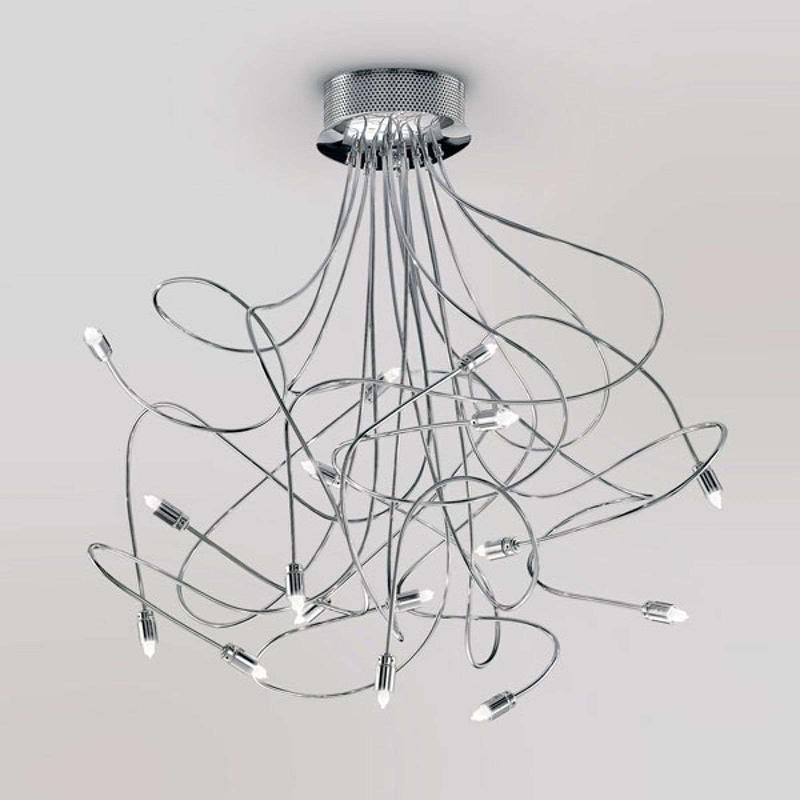 Plafonnier moderne ASTRO - Une ambiance exclusive et un éclairage original. Grâce à un bras chromé souple et 12 éléments en crista ...