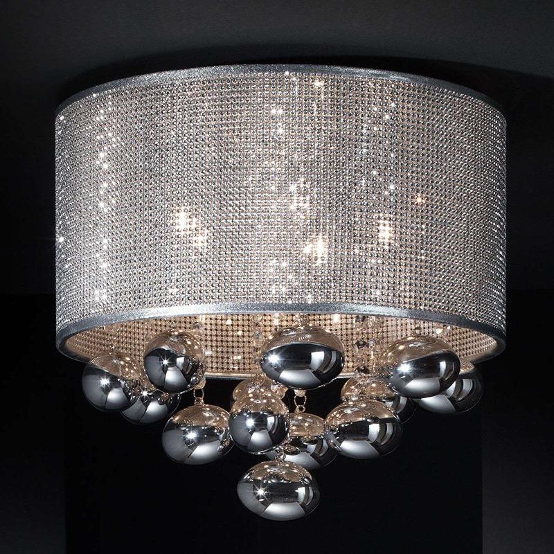Plafonnier Saten - une mosaïque de cristaux haut de gamme Le corps du plafonnier Saten est composé d\'un grillage ondulé en métal ...