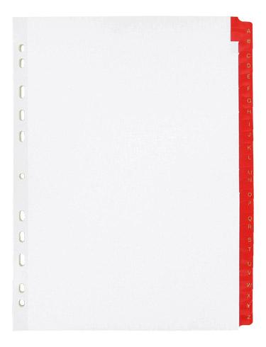 - 26 divisions alphabétiques renforcées par un revêtement plastique de couleur rouge. Impression des lettres au recto et au verso. ...