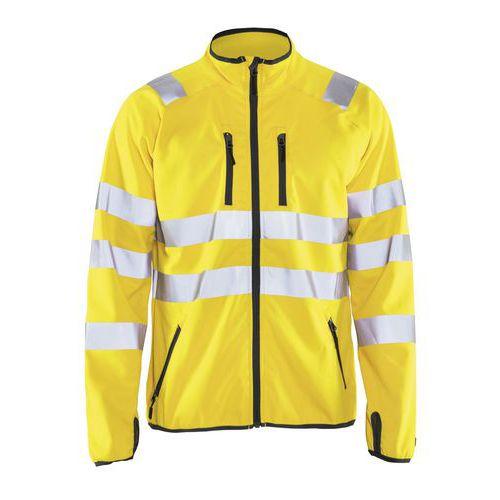 Veste softshell haute visibilité jaune fluorescent, col haut CE : oui Coloris : Jaune fluo Genre : Masculin Grammage : 290 ...
