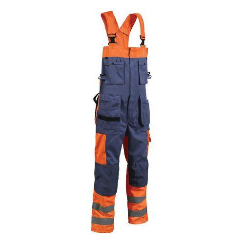 Cotte à bretelles haute visibilité orange fluorescent/marine Coloris : Bleu/orange Grammage : 300 g/m² Longueur de jambes : St ...