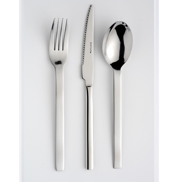 Un couvert résolument moderne avec ses formes géométriques. Une finition brossée qui réhausse le caractère du produit. Marqu ...