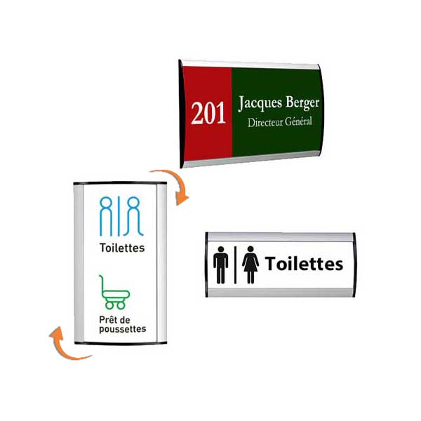 Aluminium anodisé, bombée avec embouts gris clair. - Fenêtre plexiglass amovible H6,3 x L.19,8 cm pour insertion texte - Plaquette ...