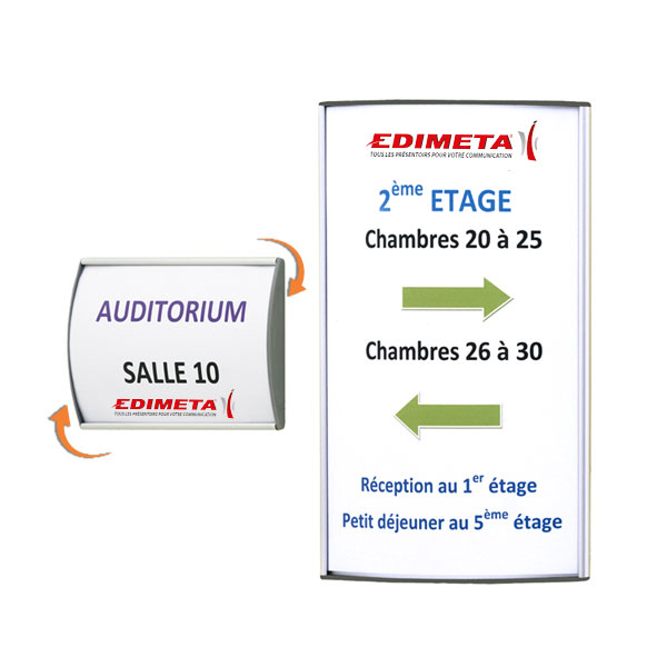 Dim. hors tout : 90 x 155 x 50 mm - 130 g - Chevalets porte-noms AluSign® - Modèles galbées en aluminium anodisé naturel, pied et ...