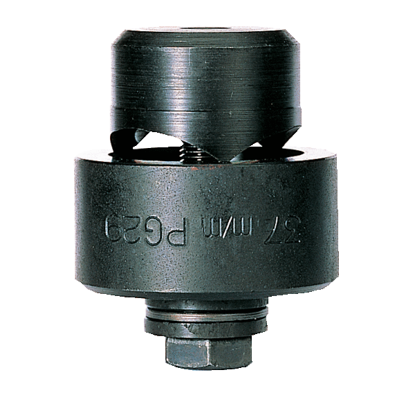 L'emporte-pièce travaille par écrasement de la matière. La butée à aiguille limite l'effort nécessaire à la découpe des tôles. (ré ...