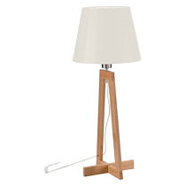 Une lampe d'inspiration scandinave. Lampe pied bois naturel en croix. Abat-jour en coton écru. Interrupteur On/ Off sur cable. ...