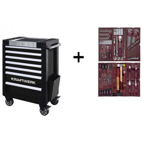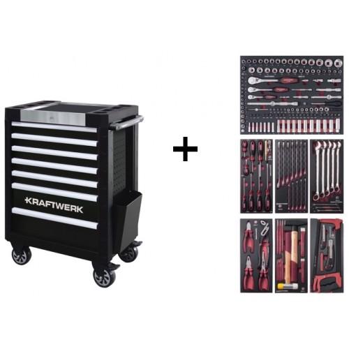 Servante robuste livrée avec assortiment de 150 outils Système anti-basculement Poids supporté 250kg Marque : KRAFTWERK D& ...