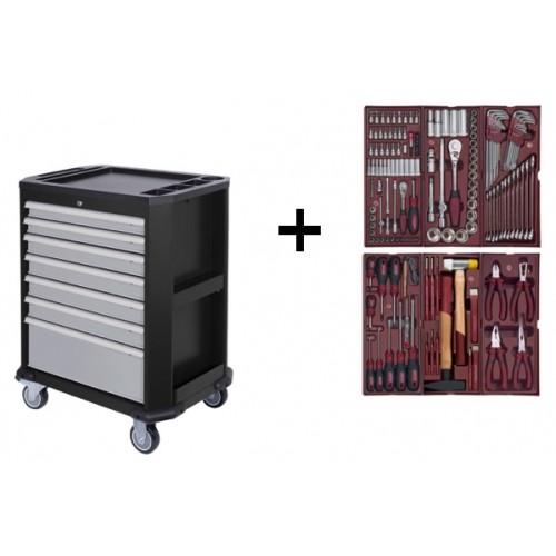 Servante complète avec assortiment d'outils COMPLETO 7 tiroirs montés sur roulement à billes et à verrouillage individuel Verro ...
