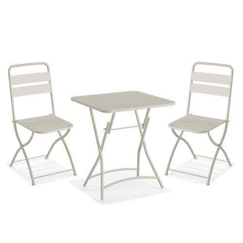 Ensemble set de bistro Breeze Veba Hauteur : 74 cm Longueurs : 60 cm Nb de places : 2 Piétement coloris : Beige Plateau co ...