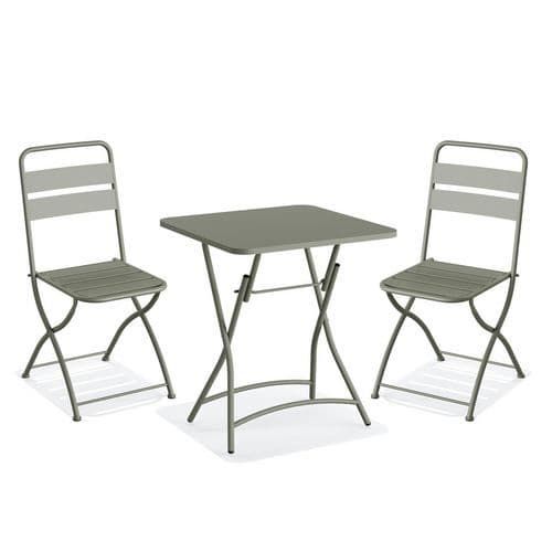 Ensemble set de bistro Breeze Veba Hauteur : 74 cm Longueur : 60 cm Nb de places : 2 Piétement coloris : Vert Plateau colo ...
