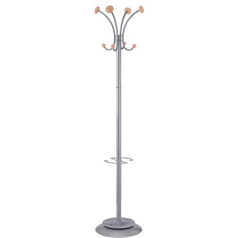 Un classique métal très bien dessiné. Tête 4 patères et 4 crochets embouts bois teinté hêtre. Corps tube métal chromé Ø 38 mm. Por ...