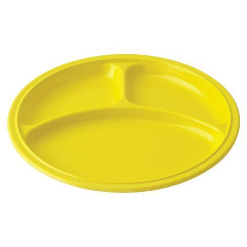 Lot de 10 assiettes rondes 3 compartiments mélamine Ø 21,5 cm Plastorex Capacité : 20 cL Coloris : Jaune Compatible lavevaisse ...