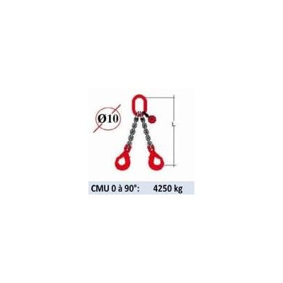 Elingue chaîne CROSBY eliminator 2 brins Diamètre chaîne CROSBY 10 millimètres CMU 0 à 90° 5600 kg - CMU 0 à 120° 4000 kg Ma ...