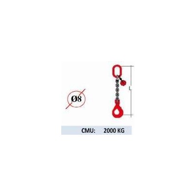 Elingue chaîne 1 brin avec crochet fonderie Diamètre : 8 millimètres Charge maximale d'utilisation 1 brin : 2000kg Marque : ...