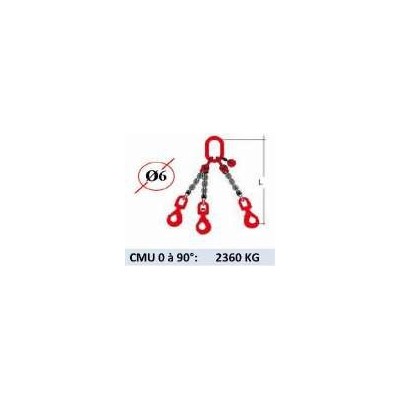Elingue chaîne CROSBY eliminator 3 brins Diamètre chaîne CROSBY 10 millimètres CMU 0 à 90° 8000 kg - CMU 0 à 120° 6000 kg Ma ...