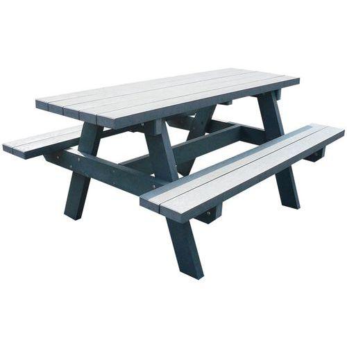 Set 2 tablesbancs Parc + 1 poubelle avec couvercle Manutan Expert Garantie client : 10 ans Hauteur hors tout : 81 cm Livré mo ...