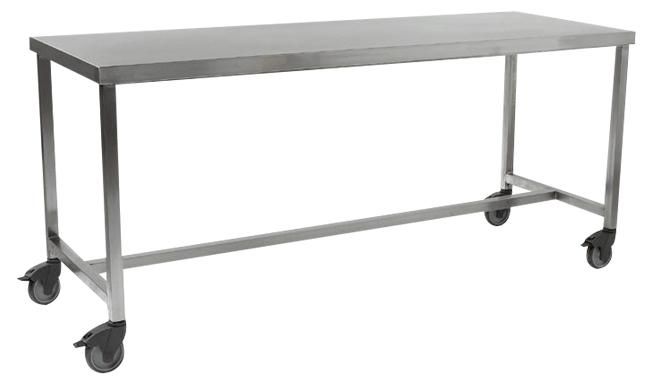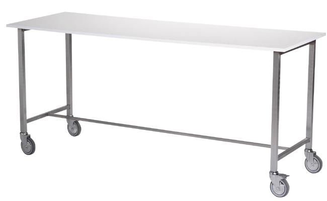 Châssis inox. 4 roulettes pivotantes en caoutchouc anti-traçant de diamètre 125 mm dont 2 roulettes équipées d’un frein. Dimension ...