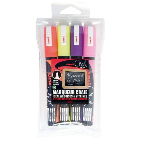 Descriptif du produit :- Facilitez vos travaux d’écriture avec le marqueur craie Uni-Ball vendu chez Bruneau. Son encre résistant à la pluie en fait un produit pertinent à usage intérieur et extérieur. De couleurs lumineuses avec une pointe ogive à trait de 1.8 à 2.5 mm, il offre une bonne lisibilité.Ce marqueur convient donc à transcrire vos menus sur tableaux noirs, panneaux lumineux ou les vitrines. Histo ...