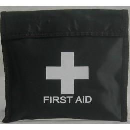 Trousse de secours souple, en tissu, avec poignée et passant de ceinture. Ouverture intégrale à plat. Filet intérieur de pr ...