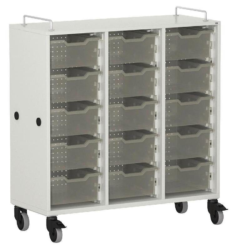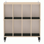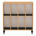 Descriptif du produit :Armoire basse corps en LIGNOpal, panneau de particules fines mélaminé avec chants collés en matière synthétique (MS).Avec parois intermédiaires collées.Colonne perforée (25 mm) avec tablettes et panneau arrière en tôle d\'acier perforée.3 colonnes avec 5 bacs en plastique, hauteur 15 cm, sur rail de guidage.Aimants fixés sur les parois latérales pour la liaison avec d\'autres élémen ...